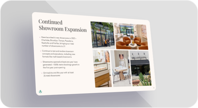 Have launched 6 new showrooms in 2023 – Charlotte, Brooklyn, Tampa, Pasadena, Nashville and Fairfax, bringing our total number of showrooms to 31 Continue to test and evolve showroom concepts and executions, including new formats like mall-based showrooms Showrooms opened at least one year have generated ~100% metro bookings growth in the first year post-opening On track to end the year with at least 35 total showrooms 9