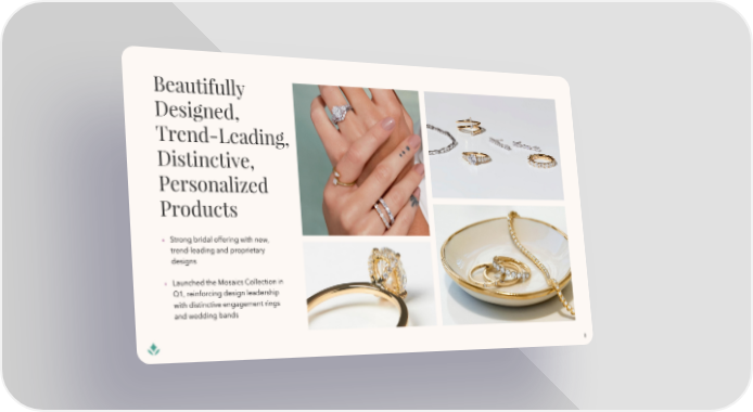 Strong bridal offering with new, trend-leading and proprietary designs Launched the Mosaics Collection in Q1, reinforcing design leadership with distinctive engagement rings and wedding bands 8