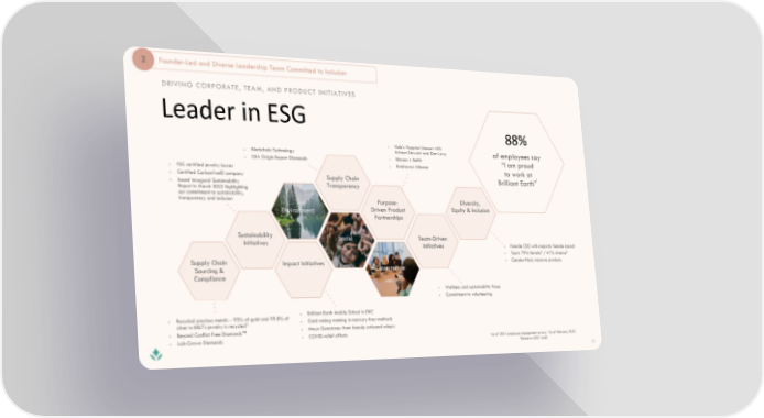 2 Founder-Led and Diverse Leadership Team Committed to Inclusion DRIVING CORPORATE, TEAM, AND PRODUCT INITIATIVES Leader in ESG 88% ✦ Hulu’s Happiest Season with ✦ Blockchain Technology Kristen Stewart and Dan Levy of employees say ✦ GIA Origin Report Diamonds ✦ Simone I. Smith ✦ Rainforest Alliance “I am proud ✦ FSC certified jewelry boxes to work at ✦ Certified Carbonfree© company Supply Chain 1 ✦ Issued inaugural Sustainability Brilliant Earth” Report in March 2022 highlighting Transparency our commitment to sustainability, transparency and inclusion Purpose- Diversity, Environment Driven Product Equity & Inclusion Partnerships Sustainability Social Team-Driven Initiatives Initiatives ✦ Female CEO with majority female board ✦ Team 79% female2 / 41% diverse2 Supply Chain Impact Initiatives ✦ Gender-fluid, inclusive products Sourcing & Governance Compliance ✦ Wellness and sustainability focus ✦ Commitment to volunteering ✦ Recycled precious metals – 93% of gold and 99.8% of ✦ Brilliant Earth Mobile School in DRC 3 ✦ Gold mining training in mercury-free methods silver in BRLT’s jewelry is recycled ✦ MoyoGemstones from female artisanal miners ✦ Beyond Conflict Free Diamonds™ ✦ Lab-Grown Diamonds ✦ COVID-relief efforts 1 2 As of 2021 employee engagement survey; As of February 2022 3Based on 2021 audit 10